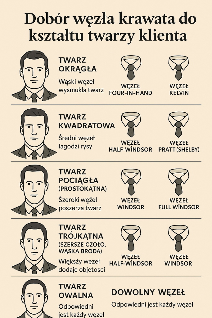 Dobór węzła krawata do kształtu twarzy klienta